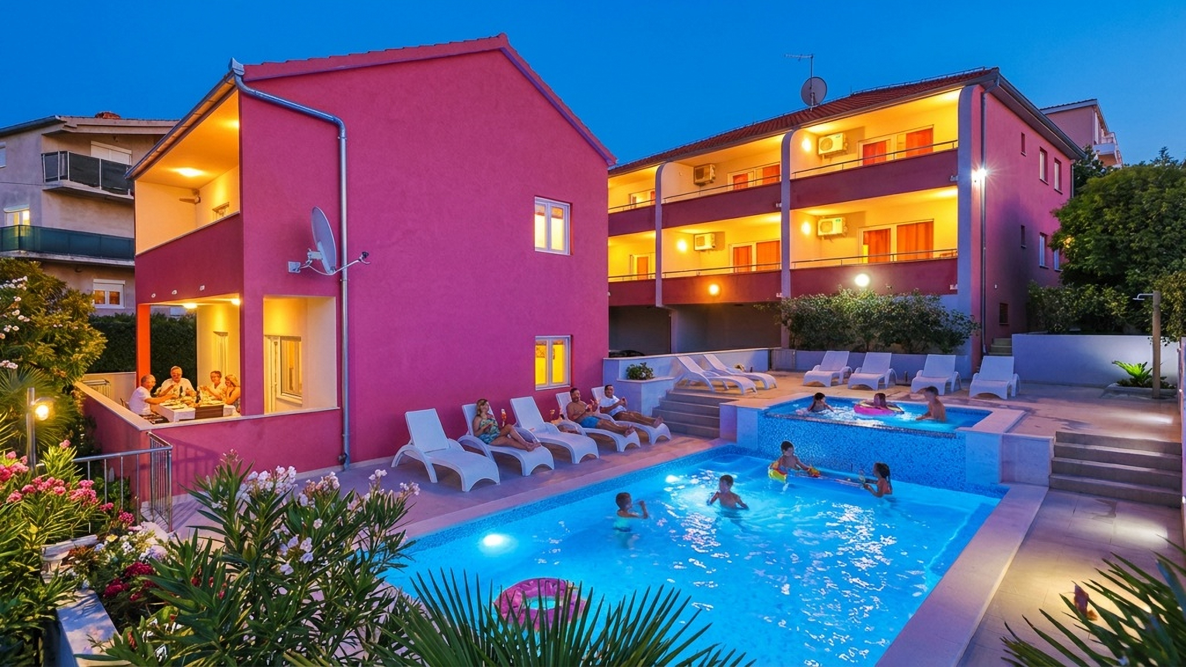 Apartmani Stin & Villa Ina is a family-run property offering six apartments and one holiday home, perfect for a relaxed stay in Trogir. Guests enjoy free, secure on-site parking, as well as Wi-Fi, and full use of the swimming pool, sun loungers, and umbrellas included in the price. All units are air-conditioned. For our youngest guests, a baby cot and high chair are available free of charge.